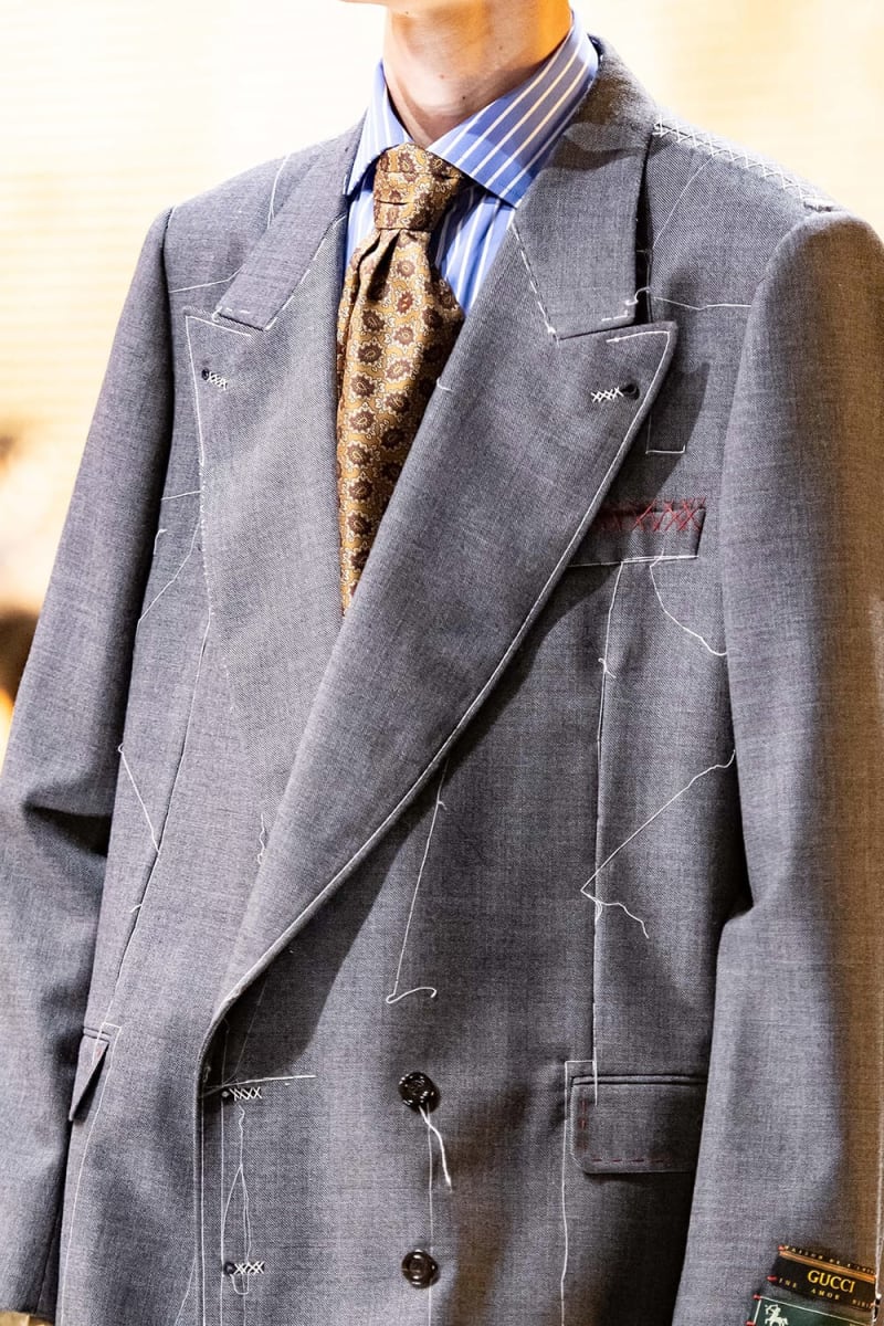There is a quality that is seemingly incomplete or halfway about gray—seen here in Gucci’s unfinished suiting.