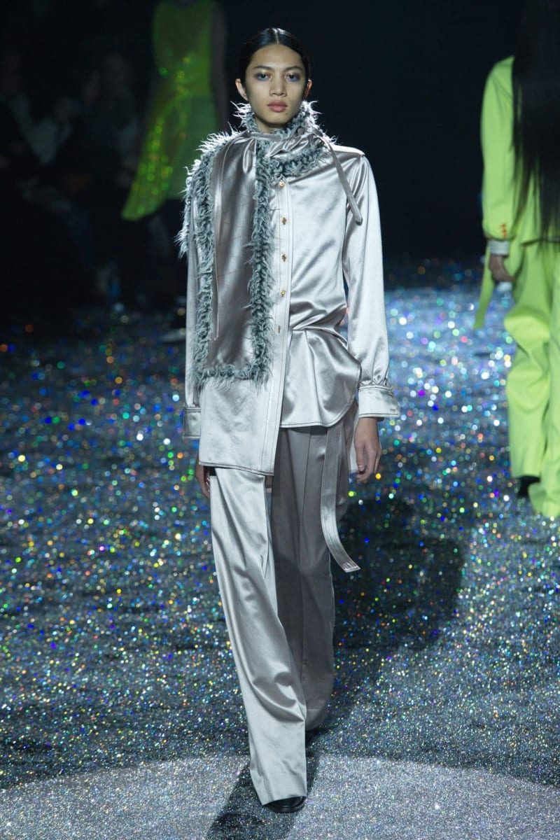 Although his name is Browne, gray is his signature. The all-time classic medium-gray of the American business suit is continually updated in Mr. Browne’s designs, with the shrunken proportions and unexpected detailing he is now acclaimed for. For FW19, he pushed the classic gray suiting fabric one step further, giving it a womenswear spin with luxe trims and nods to corsetry.