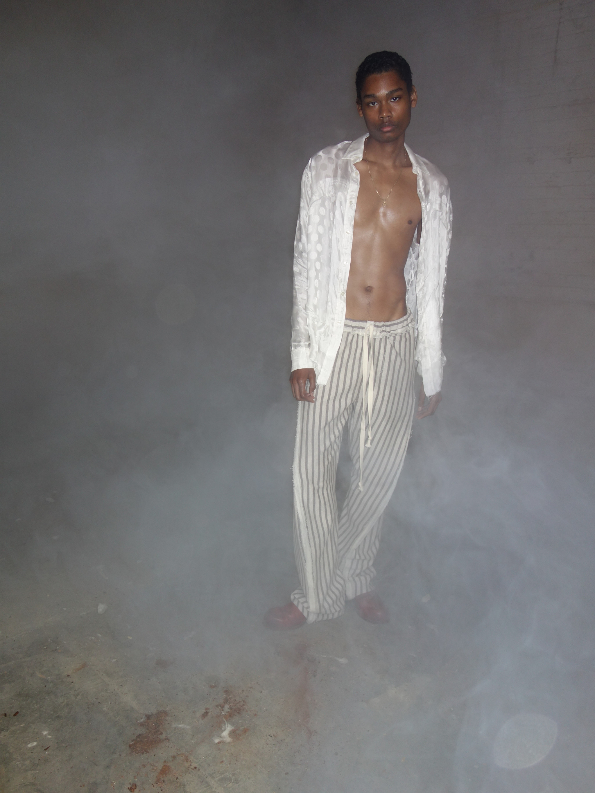Alain Paul’s dance background informs his namesake label, ALAINPAUL, in such a way that the cut of his clothes are designed to articulate beautifully. But this season’s use of sheer fabrics are less about peekaboo sensuality and more about an expression of strength: the body as a locus of agency.