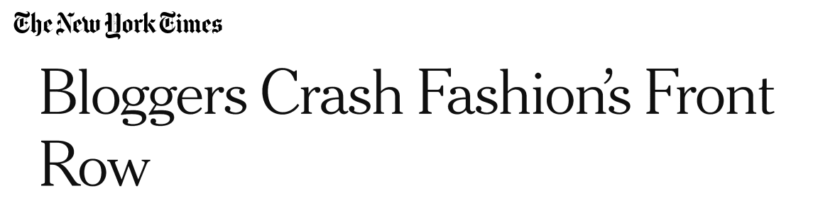 The New York Times covers fashion blogs and bloggers for the first time, citing publications with names like Blogdorf Goodman, I Am Fashion, Shoewawa, Now Smell This, Fashion Addict Diary, and Closet Therapy. “They may be a long way from displacing Vogue as a fashion authority, but they are steadily gaining clout with consumers and marketers,” writes Ruth La Ferla.