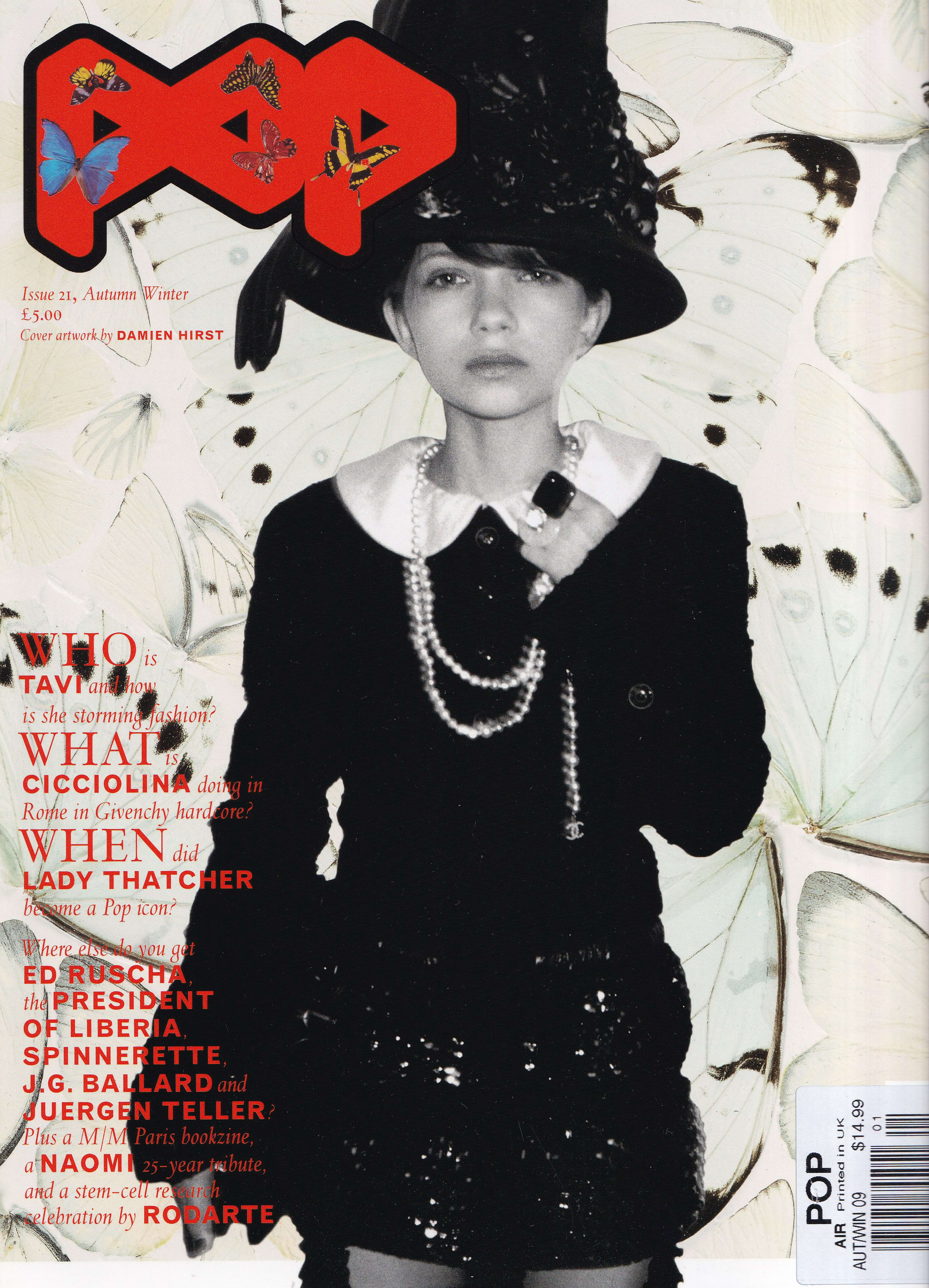 Above: Pop magazine fall 2009 cover featuring Tavi Gevinson with cover artwork by Damien Hirst.