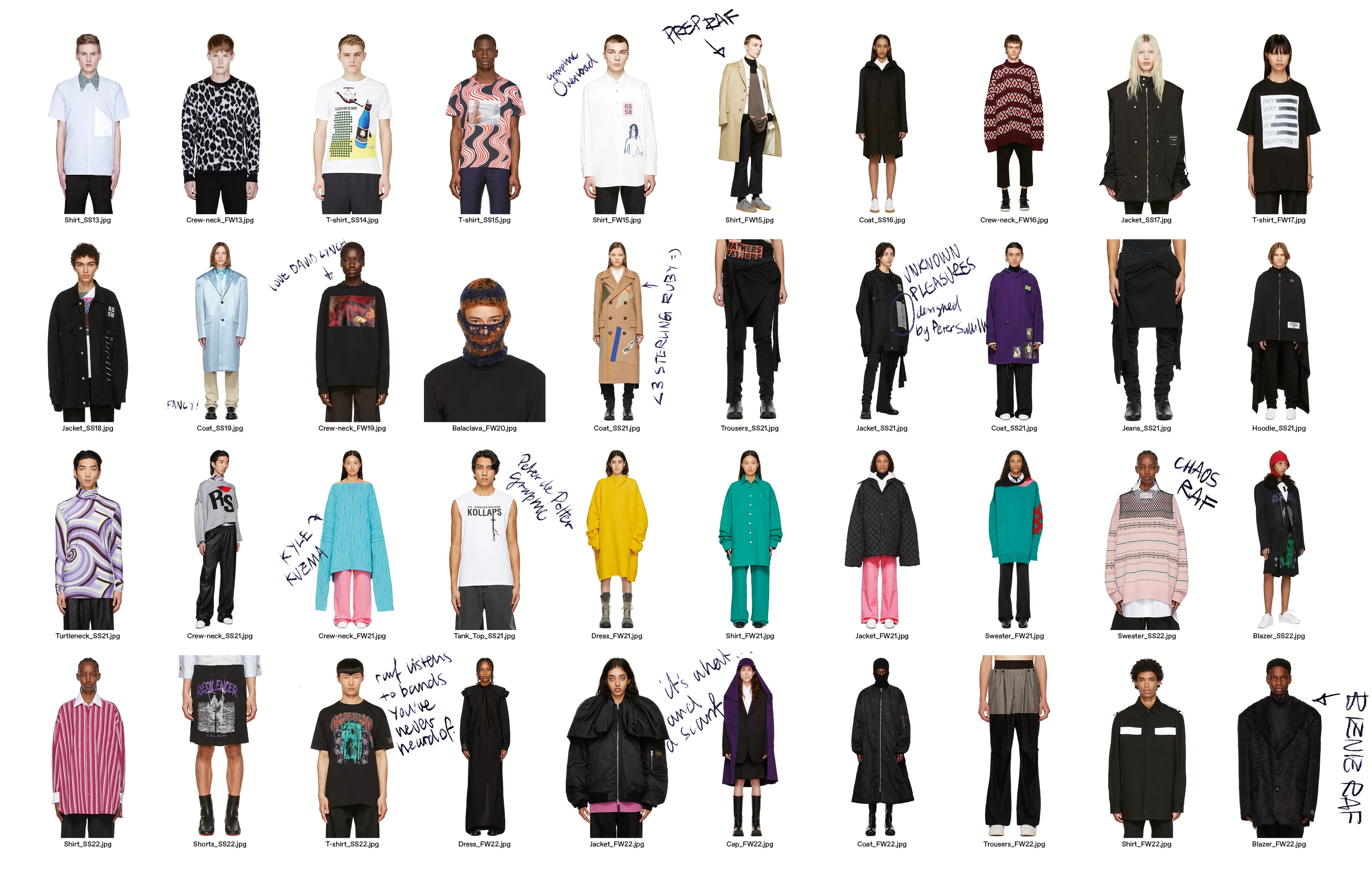 Simons founded his line in 1995, led to his career by a near-spiritual epiphany he had watching Martin Margiela present a collection on a Parisian playground in 1989. With his skinny suits in the ‘90s, the seminal and ominously destabilizing “Riot Riot Riot” collection in 2001, and his graphic-heavy ability to merge music and contemporary art with fashion, Simons created (and recreated) menswear as it exists today. And now his eponymous line takes a bow—SS23 is the final Raf Simons collection, though he remains co-creative director at Prada. “Deadstock in memory,” Frank Ocean once said, “Please don’t pop my tag.”